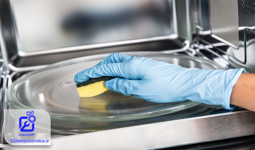 - بخشهای داخلی مایکروفر را تمیز کنید.