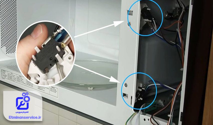 - درب مایکروفر را ببندید و باز کنید. اگر صدای کلیک از میکروسوئیچها شنیدید، نسبت به سالم بودن آنها مطمئن شوید.